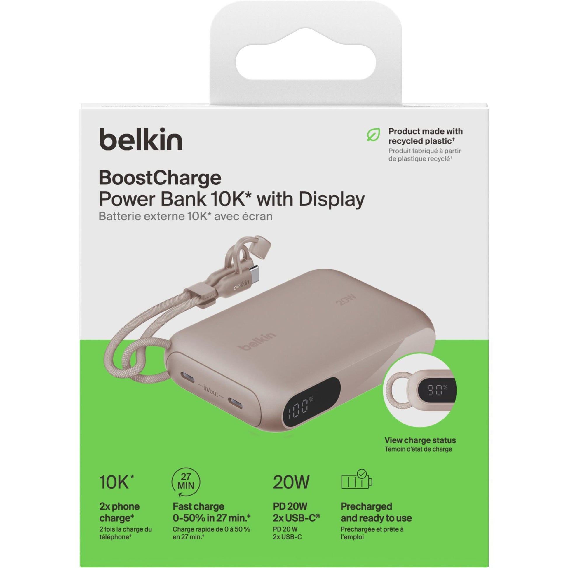 Belkin BoostCharge 10K Power Bank with Display (Sand)
