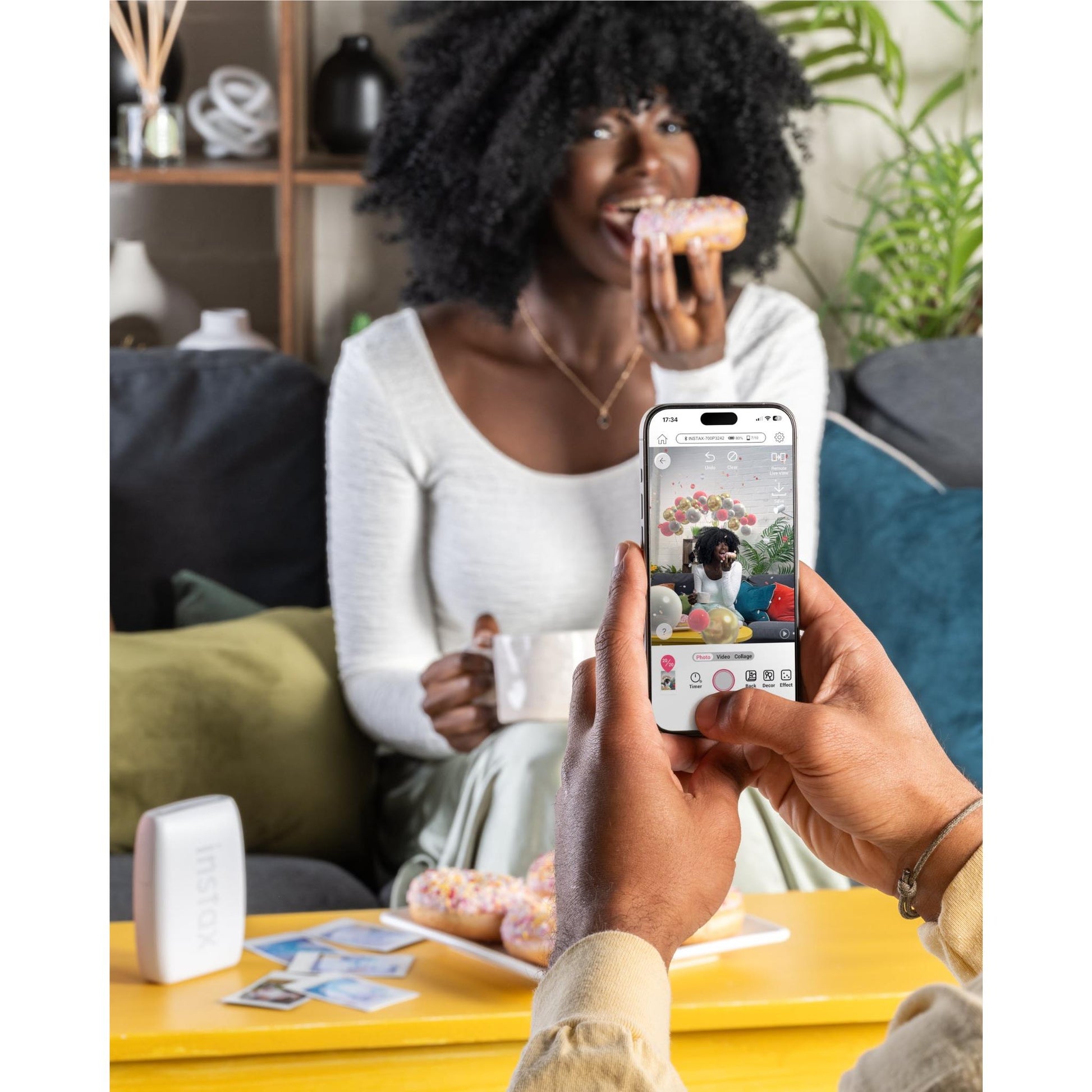 Open instax AiR Studio™, set the scene and hit ‘Remote Live View’. A QR code appears ready to be scanned by another phone. Once scanned, both you and your friend will be able to see the ‘scene’ before taking the photo – the easiest way to make sure you’re centre stage within the shot!