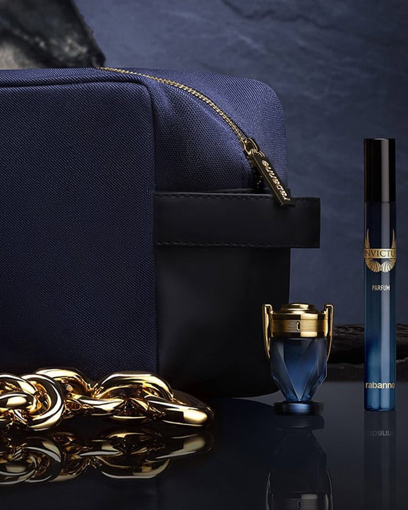 Rise to greatness and unleash the epic hero within, with new INVICTUS PARFUM by Rabanne. Captures your inner legend and empowers you to conquer divine heights. Blended with exceptional ingredients, Invictus Parfum is a powerful aromatic woody watery fragrance. Fresh lavender collides with sensual black soap and addictive sandalwood in an olfactive clash for gods. The iconic INVICTUS bottle comes with a stronger V–shape silhouette and a gold cap to make way for a more powerful trophy than ever before. Invictus Parfum: a fragrance for the half-god hero who turns life into legend.