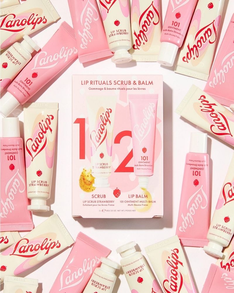 Lanolips Lip Rituals Strawberry is here for ultra smooth and hydrated lips. For the ultimate lip smoothing ritual, this lip care routine set includes two full sized products; Lip Scrub Strawberry & 101 Ointment Multi-Balm Strawberry. The perfect gift.