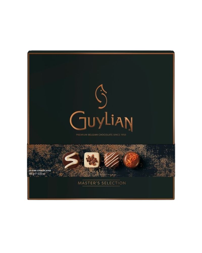 Guylian Master's Selection 185g - Premium Belgian chocolate pralines in 6 different flavours (coffee cardamom, mocha, almond praliné, caramel pineapple, signature hazelnut praline, orange) with 100% Fairtrade cocoa