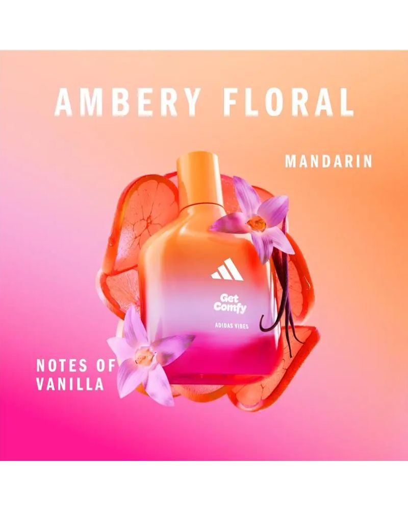 Feel the vibe and feel comforted with this new adidas fragrance. Calming and warming, when you just want to hang out and relax, comfortably. With notes of Vanilla and Mandarin. The long lasting fragrance, with orange natural essential oil, has a vegan formula and is dermatologically tested.