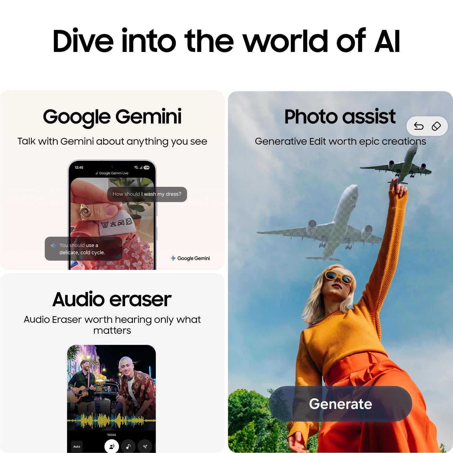 3 Gemini is a trademark of Google LLC. Gemini Live feature requires internet connection and Google Account login. Compatible with certain features and certain accounts. Available on select devices and select countries, languages, and to users 18+.