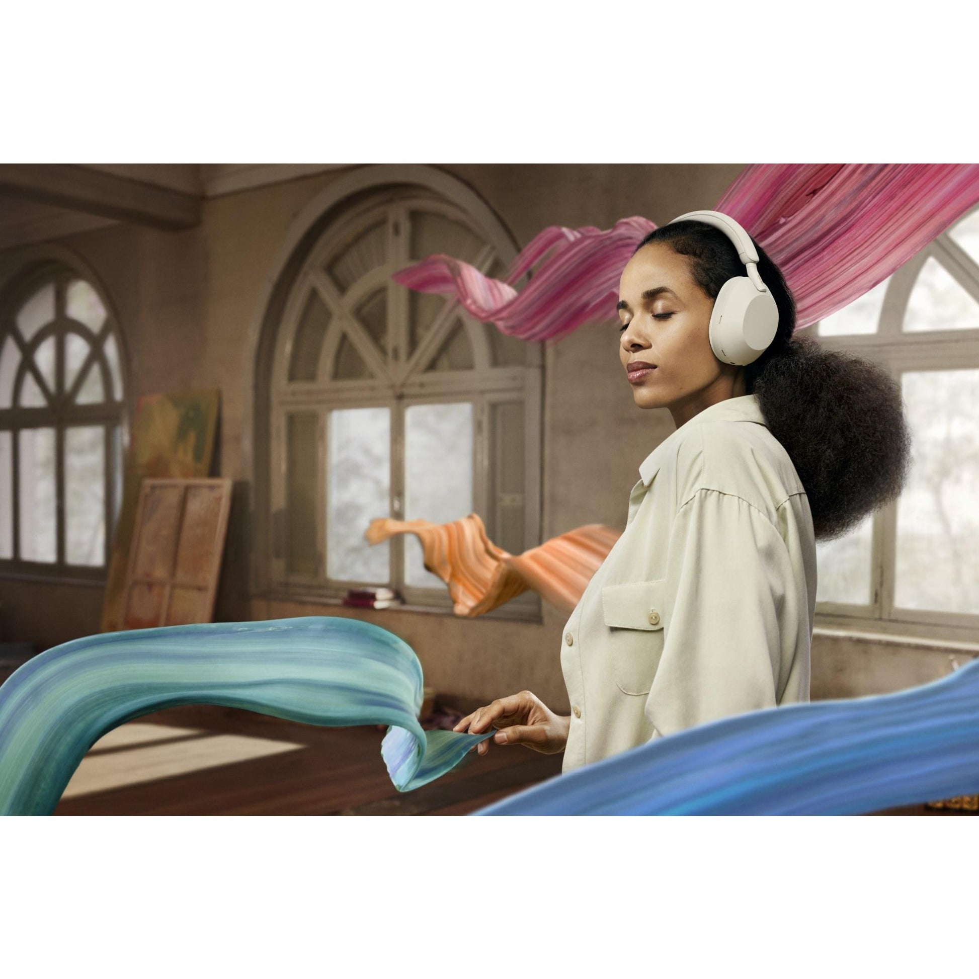 These lightweight headphones are beautifully finished in newly developed soft fit leather. This material fits snugly around the head with less pressure on the ears while keeping out external sounds. Our noiseless design with stepless slider, seamless swivel and hanger, and silent joints, makes WH-1000XM5 a pleasure to wear.